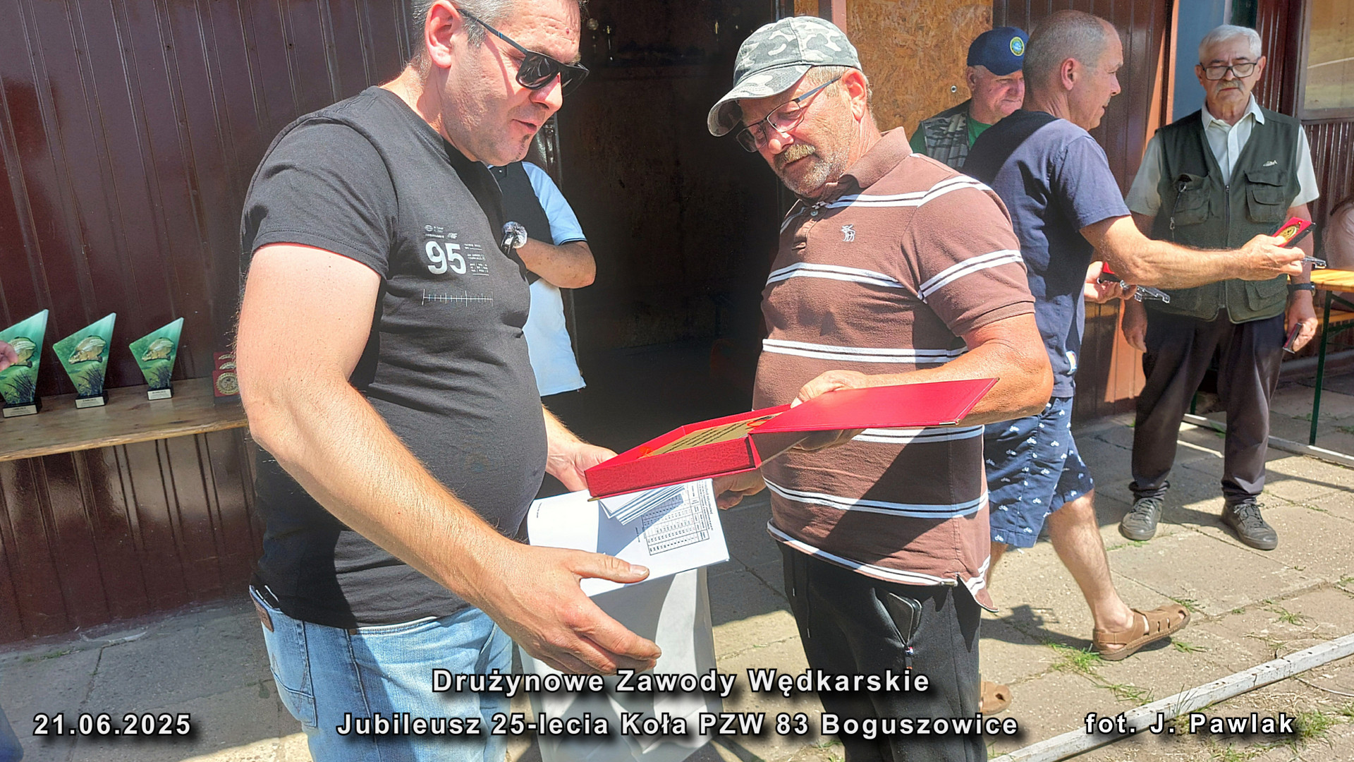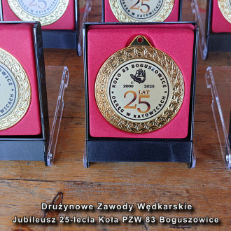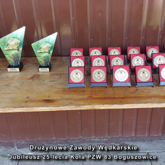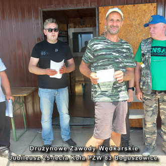 Przed ogłoszeniem wyników Prezes Zarządu Okręgu Mirosław Winiarskiw obecności kol. Janusz Olszewskiego wiceprezesa ds. organizacyjnych Zarządu Okręgu odczytał list gratulacyjny poczym wręczyli na ręce Prezesa Koła kol. Michał Szuryna pamiątkowy upominek z okazji Jubileuszu 25-lecia działalności Koła 83 Boguszowice, poczym wspólnie z Prezesem koła złożyli gratulacje zwycięzcom zawodów wręczając puchary, pamiątkowe statuetki i nagrody w konkurencji drużynowej oraz dla najlepszych zawodników w sektorach.